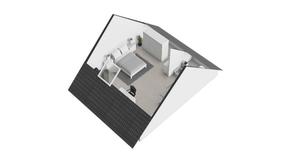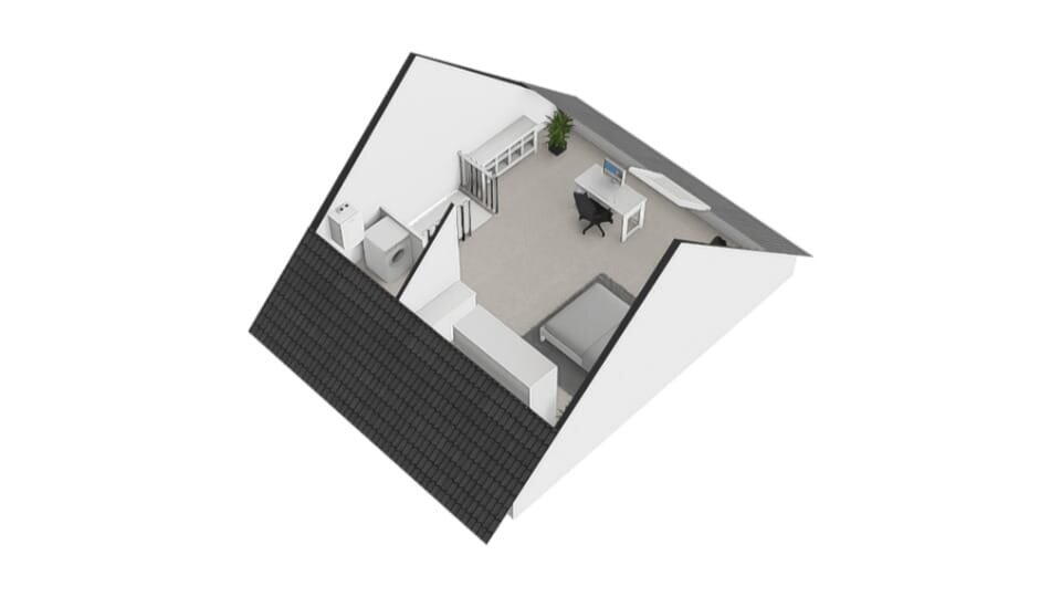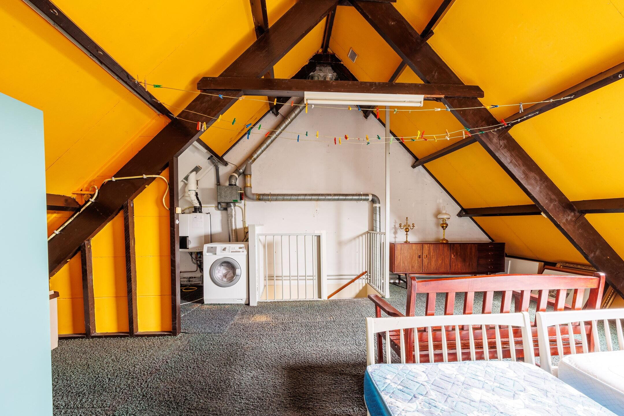 2e Verdieping: Royale zolder met Velux dakraam, opstelplaats voor de cv ketel, aansluitingen voor was- en droogmachine.