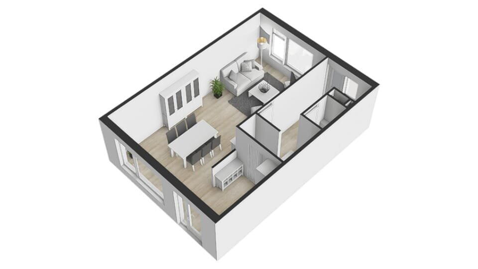 - 50 m² (11,50 meter diep en 6,20 meter breed)